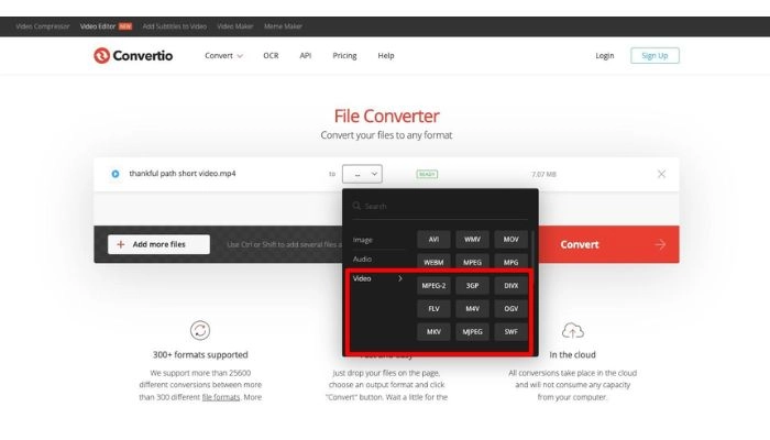 Once you have uploaded the video, Convertio will show various output formats. Go for the ones that best suit your requirements. Refine your converted video by choosing formatting options according to the file size, quality, and compatibility. Convertio may also offer extensive choices to modify settings like resolution, bitrate, and audio quality, enabling you to customize the output to meet your unique requirements.