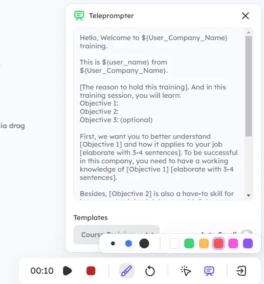 Surprisingly, it supports a powerful AI teleprompter and multiple script templates while recording. And you can use the colorful Pen and Mouse Highlight, to make important notes or annotations.