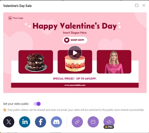 You can also include a clear call to action in your video, prompting viewers to take specific steps, such as visiting your website, making a purchase or signing up for an exclusive Valentine's Day offer. It provides a more direct and interactive way to direct potential customers.