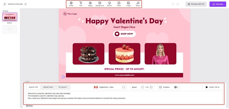 Step 4. After editing all the messages in the video, click Generate to create your unique Valentine Day video. You can share the generated happy Valentine Day video directly or download it.