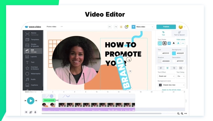 Wave.video is a comprehensive promo video maker that offers a wide range of tools to create engaging and professional videos for marketing purposes.