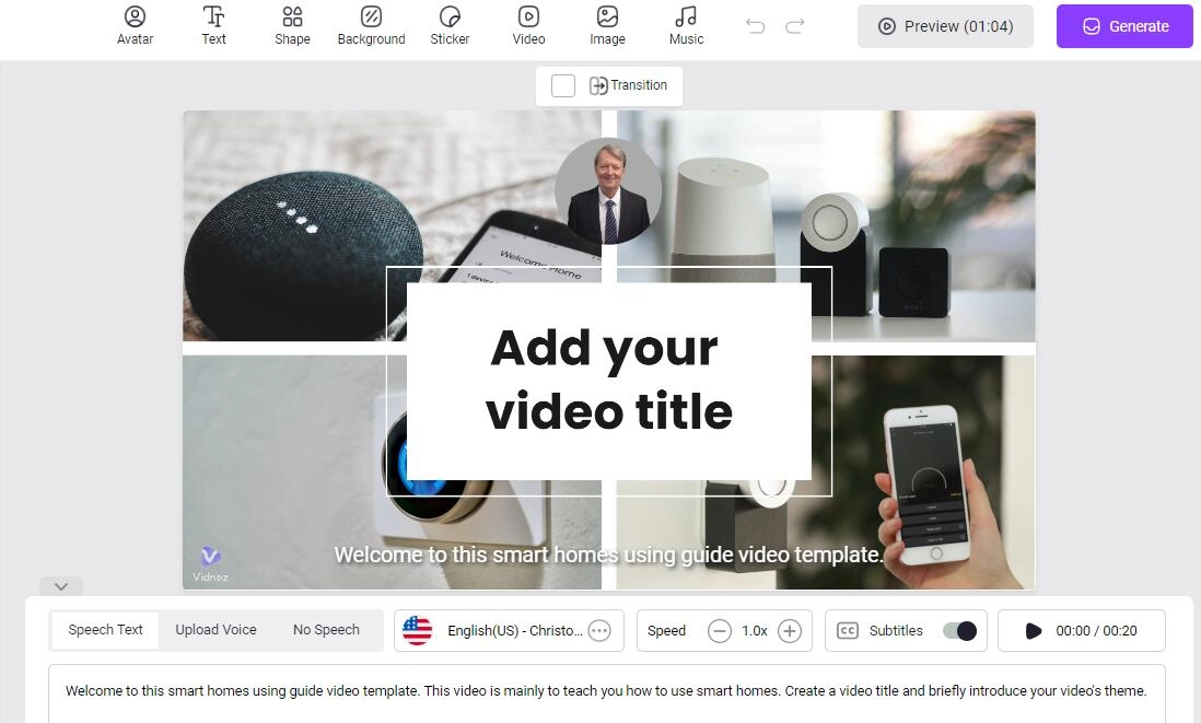 - Intuitive and convenient video editor: Vidnoz AI provides a user-friendly interface that allows you to easily edit and customize your social media marketing videos. You can add text, images, and background music to your videos to easily enhance their appeal.