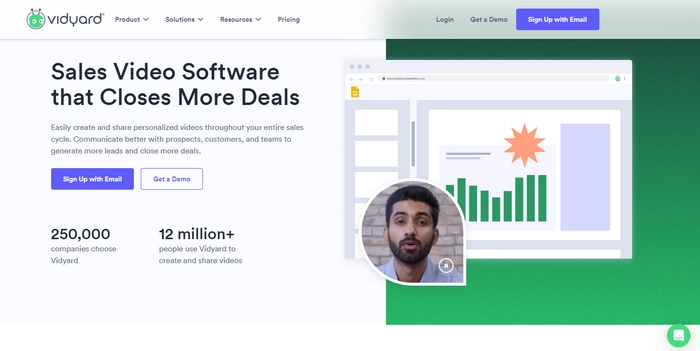 Vidyard is also an excellent video marketing platform letting you create or record personalized videos and share them with your colleagues and clients. This platform offers tools for every stage you may involve in, from video creation to video analytics.